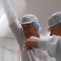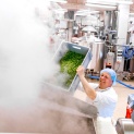 De verpakkingen worden teruggekoeld in een speciaal ontwikkelde windtunnel en vervolgens gelabeld en in CBL kratten verpakt. Dit gebeurt op de inpakafdeling.